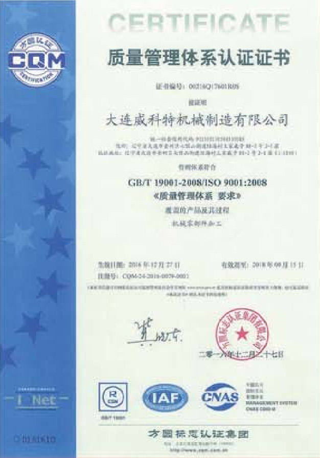 大連威科特成立于2003年,2012年搬遷至大連金州經(jīng)濟(jì)技術(shù)開(kāi)發(fā)區(qū)。公司注冊(cè)資本2500萬(wàn)元,占地面積25000m2,辦公地點(diǎn)位于大連開(kāi)發(fā)區(qū)遼河西路73號(hào)融通大廈。公司現(xiàn)擁有員工68人,中高級(jí)職稱(chēng)人數(shù)15人,技工30人以上,公司已通過(guò)ISO9001:2015質(zhì)量管理體系認(rèn)證,擁有多項(xiàng)專(zhuān)利技術(shù),經(jīng)過(guò)多年的發(fā)展,逐漸形成了一支素質(zhì)過(guò)硬、制造經(jīng)驗(yàn)豐富的管理、技術(shù)和生產(chǎn)團(tuán)隊(duì),保證了公司的持續(xù)發(fā)展和創(chuàng)新能力。